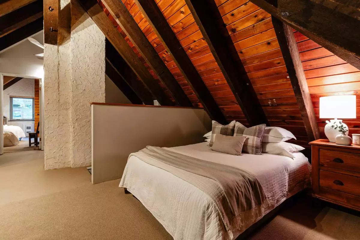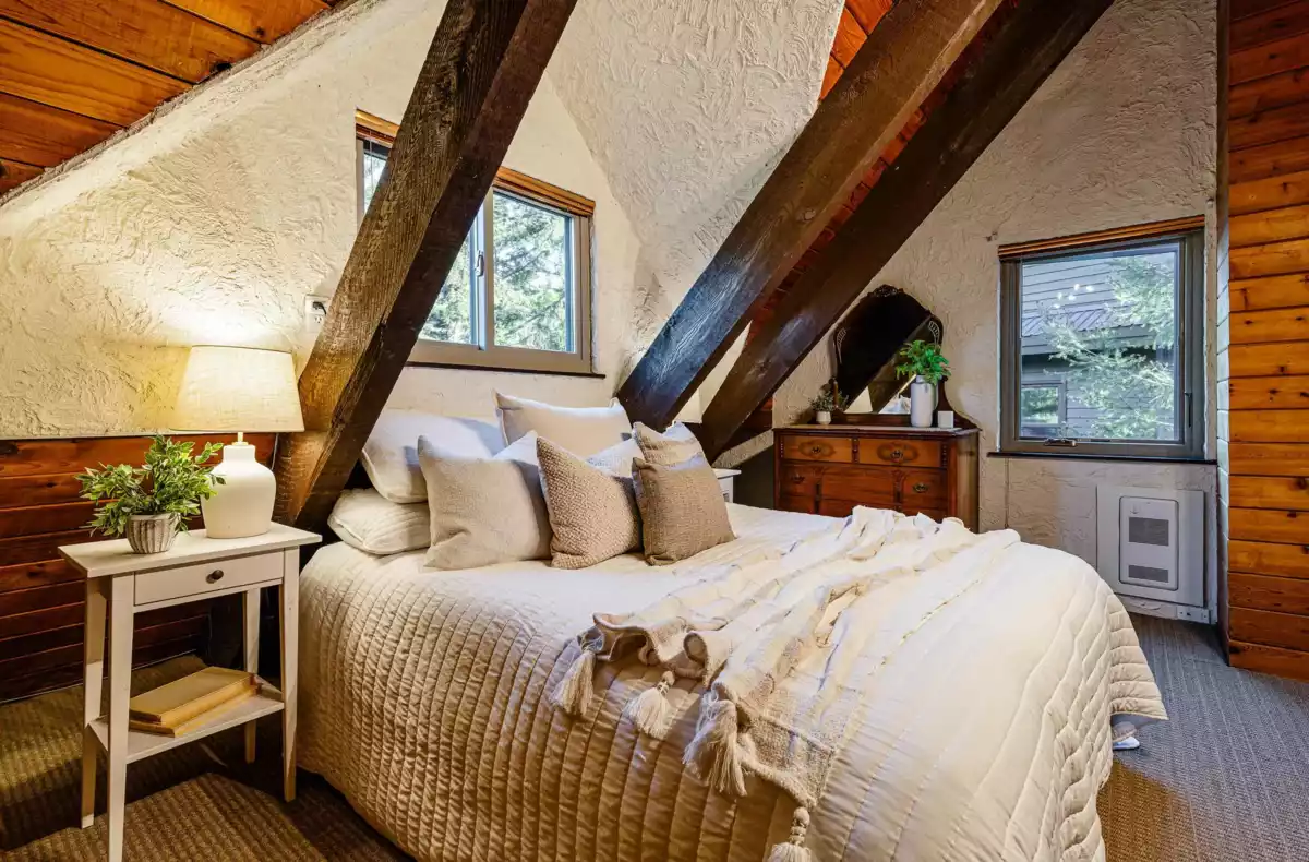 Welcoming alpine-inspired chalet combining modern living with timeless charm, thoughtfully cared for by one family for over 30 years. Features 3 beds, 2 baths, a large vaulted loft, and open layout. Airy kitchen with breakfast nook, sunken living room, and formal dining opening onto a spacious patio with mountain views. Versatile outdoor space with tiered gardens underground irrigation, and host of 2 family weddings. Includes a 2-bed + den guest suite and sauna. Parking for 6, steps from bus route. Renovated throughout. A perfect alpine retreat or full-time home. Open House Sept. 13 2-4