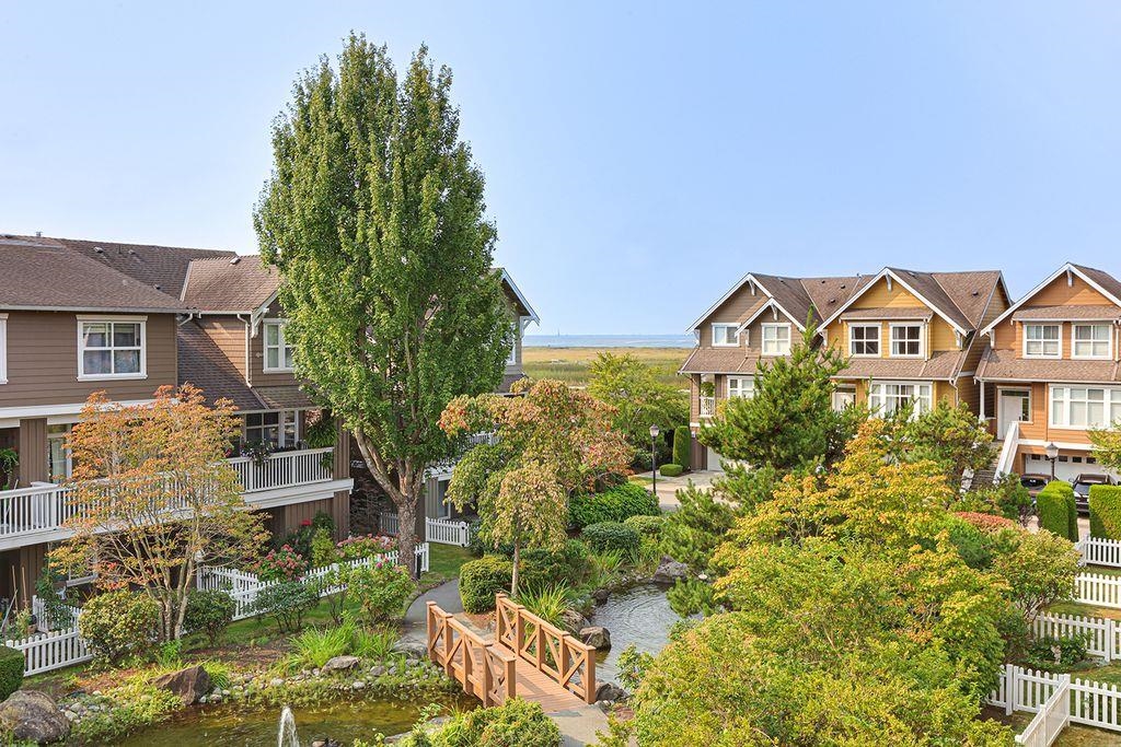 Seafair West - this water view townhouse is rarely- available. This well-situated home with 3 bedrooms, 2.5 baths + large office (which can be used as a 4th bedroom). The large south exposed deck off of the main living area with 9 ft ceilings offers partial water viewer nearby views of the West dyke as well as the pond and fountain system within the development. The well-maintained and updated home offers quartz counters in the kitchen and bathrooms, stainless appliances and radiant hot water in-floor heating. Single car garage. Close by amenities: Steveston Village, shopping, groceries and recreation.