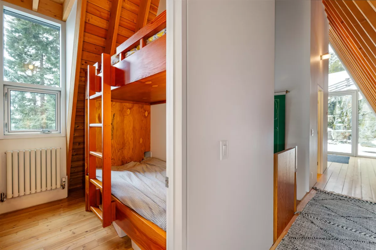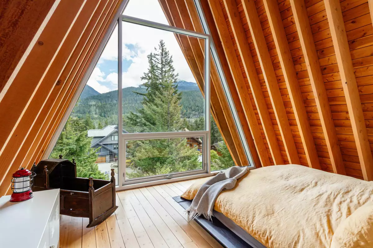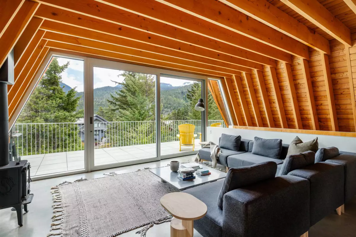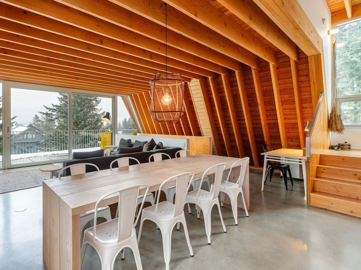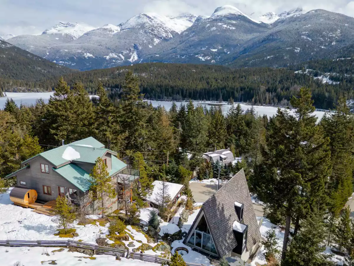 Set on a private, sun-filled lot, this 2.5 bedroom architectural A-Frame offers flexibility and room to grow. Expand on the existing design or add a carriage house with garage and independent suite—ideal for family or multi-generational living. Designed by Scott & Scott Architects, it features a soaring red cedar shake roofline anchored into bedrock, framing dramatic mountain views through bold Douglas Fir beams. Locally sourced materials, including marble counters from Vancouver Island’s Hisnet Inlet quarry, reflect enduring craftsmanship. With three levels, expansive outdoor living, firepit, and hot tub, this Cabin Porn-featured home is a timeless mountain retreat with space to evolve.