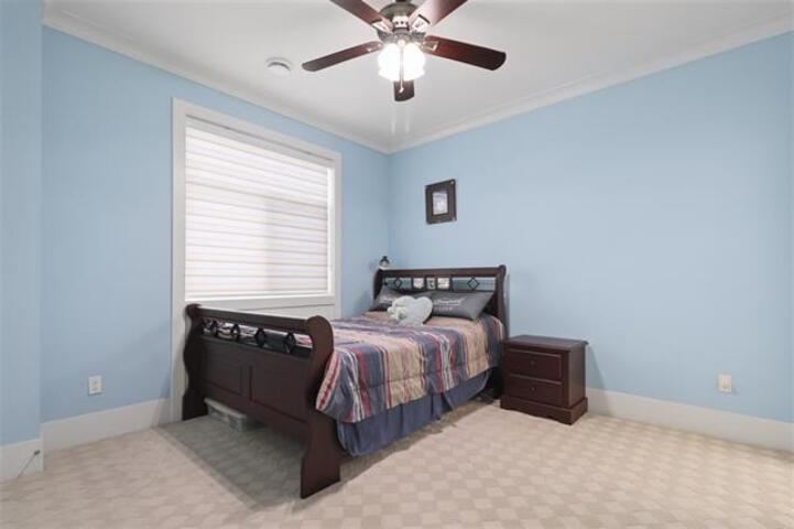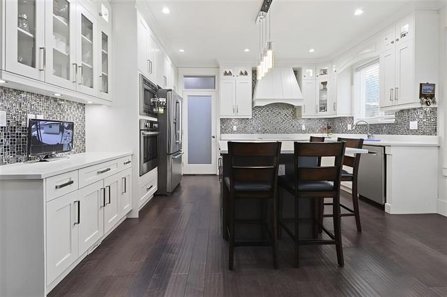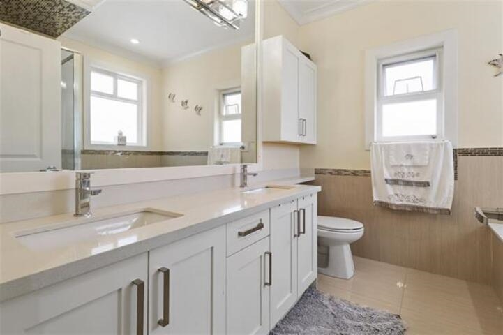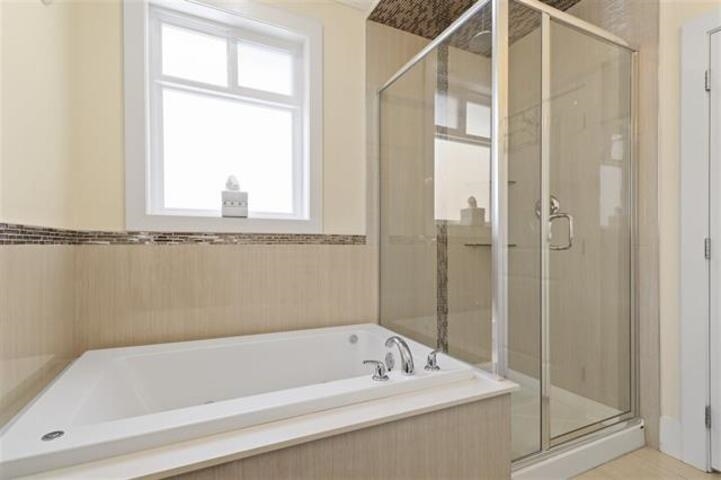 Luxury custom built home on big 6000 SQFT lot. This 3 level home has high end finishes and offers 8 bedrooms, 6 bathrooms. This home features a legal 2 bedroom in basement, dream kitchen and spice kitchen on main, top of the line appliances, granite countertops, large centre island prefect home for entertaining. Spacious living and dining room. Good size theatre room in the basement, no money spared. Home has radiant heat, AC and 2 master suites upstairs with 2 additional bedrooms. Huge attached 450 SQFT garage and 240 SQFT shed in the back garden. Great location close to shop and transit