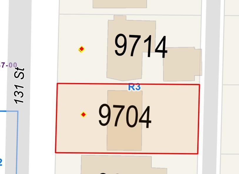 GREAT INVESTMENT PROPERTY! This massive 7500 sqft Lot with back lane has 60 ft frontage. Ready with building plans to make a Full 3-level Duplex with a 2-level Garden Suite. Each 1/2 duplex is 2700 sqft + 695 Sqft Garden suite = 3400 sqft approx. Nextdoor house (9714 131 St R3039355) is also ready with plans for a Full Duplex with Garden Suite. Buy this investment all by itself or pair it together to buy as a package. Live or rent this 3-bedroom house + 1 bdrm suite if you plan to build in the future.