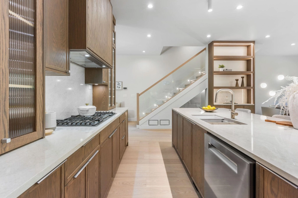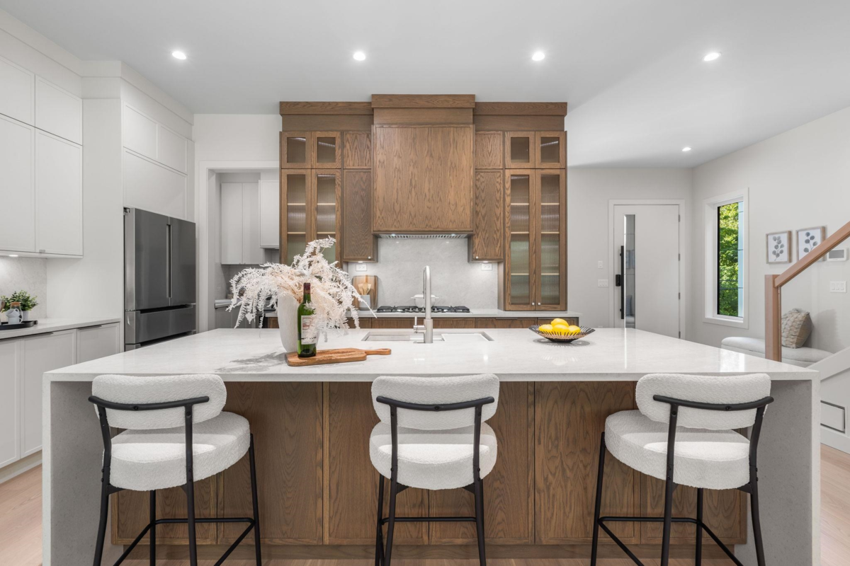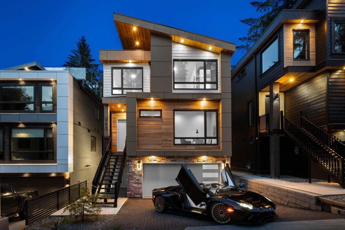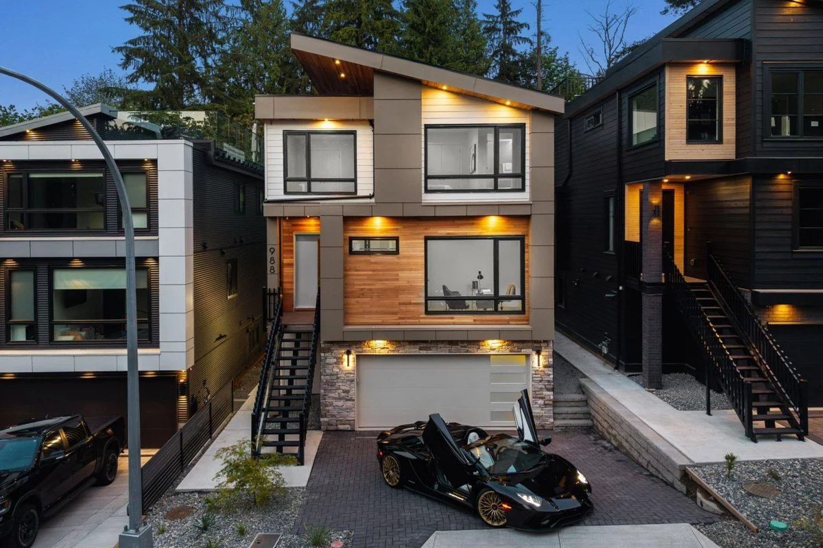 Refined West Coast Living in the Heart of Port Moody! Over 3,000 sq ft of thoughtfully designed living in this custom, three-level residence where timeless architecture meets modern elegance. Features water, greenbelt, and mountain views, this home blends luxurious comfort with everyday function. Main floor offers a stunning open-concept layout anchored by a gourmet kitchen, complete with additional wok kitchen, designer bar, coffee pantry, and home office. Upstairs, you'll find four bedrooms, including a tranquil primary suite spa. One-bedroom basement suite provides a versatile space for family or income potential. Outdoors, enjoy stunning greenbelts w/ privacy and stunning backdrops. Located in a vibrant neighbourhood just minutes from trails and parks, schools, and transit routes.