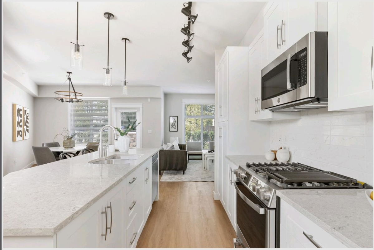 Discover Walnut Park by Quadra Homes – completing Dec 2025! This 1-bedroom ground-floor home (581 sqft) offers modern comfort in Langley’s prime location at 208 St & 83 Ave. Featuring 9’ ceilings, oversized windows & upgraded oak-tone laminate floors (no carpet!), this unit shines with a sleek kitchen of quartz countertops, S/S appliances & ample storage. Stay cool with portable A/C. Enjoy the convenience of a private patio, perfect for pet owners, plus underground parking pre-wired for an EV charger & a storage locker. Spa-like touches include heated bathroom floors, built-in closet organizers & a secure in-suite safe. Low strata fees & pet-friendly. Steps to shops, dining, schools & transit — an unbeatable assignment opportunity in the heart of Langley.