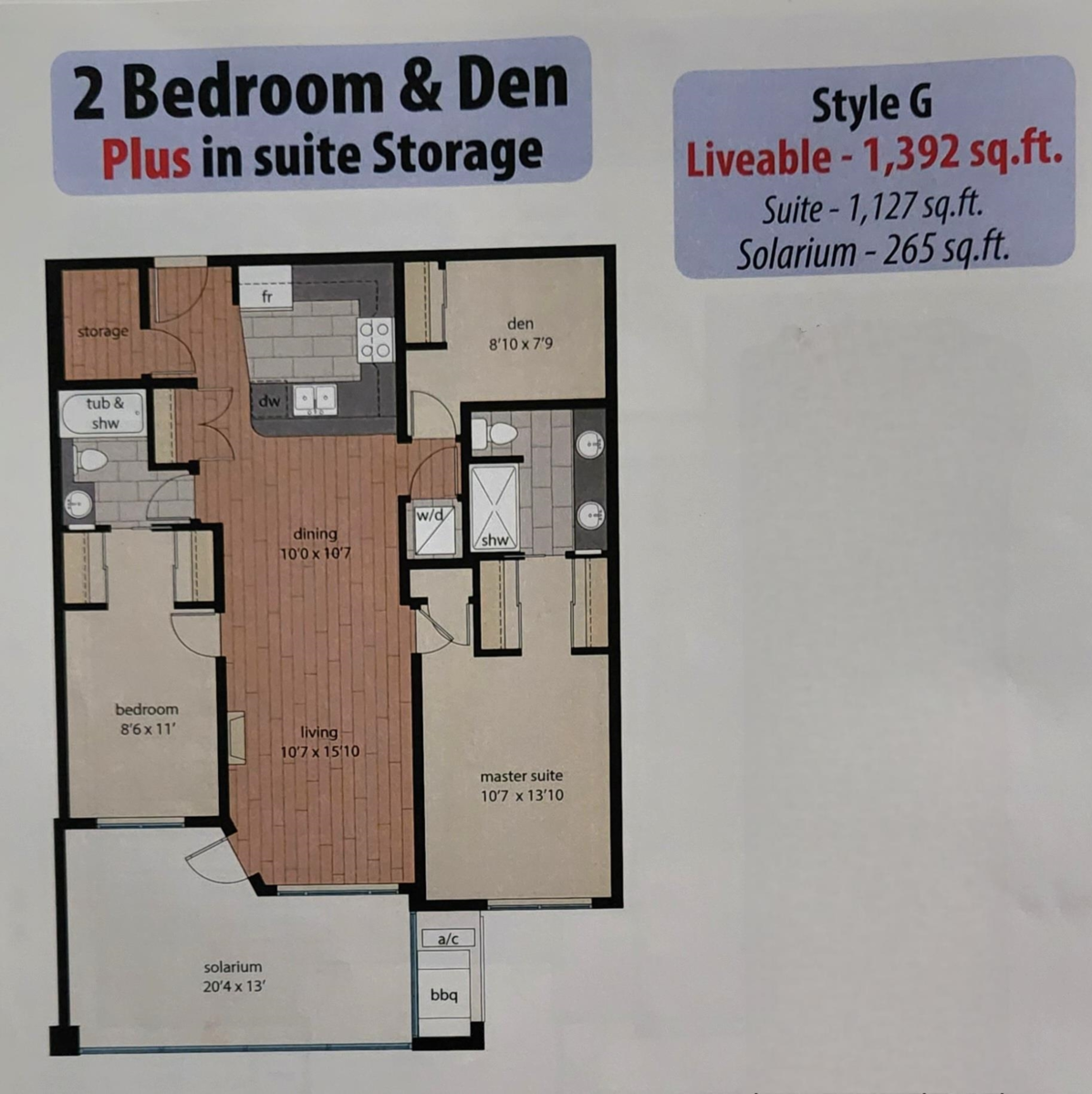 Welcome to this luxury spacious home featuring 2 bdrms & den w/closet, 2 full baths w/heated floors & fog free mirrors & 9'ceilings. Enjoy your year round private Solarium, with gas bbq,ceiling fan and retractable glass panels. All acoustic wood-grained plank floors thru-out & Gourmet hardwood raised cabinet kitchen, granite counters, high end S/S appliances, gas stove. A/C- heat pump. Walls ceilings & floors are acoustic quality. 2 underground parking stalls (7'high access) w/secured concrete walled mini garage(9'8"X8') having a plug for your EV car. Good visitor parking. Easy Hwy1 access. Transit close, walk to nearby Willoughby Town shopping center and parks