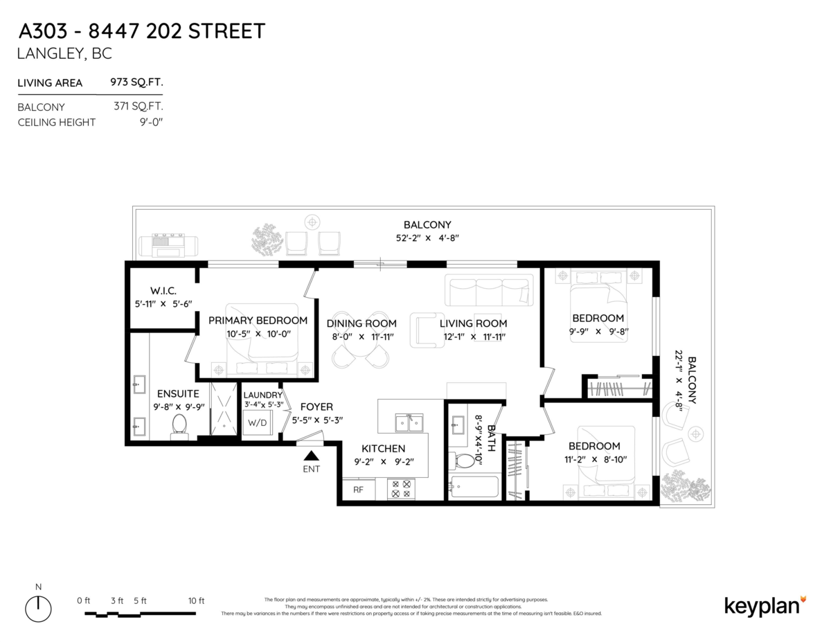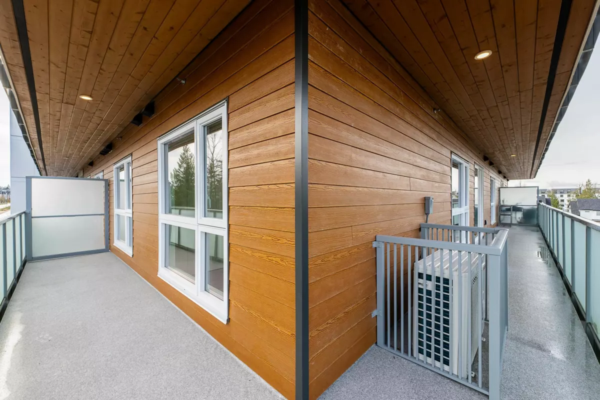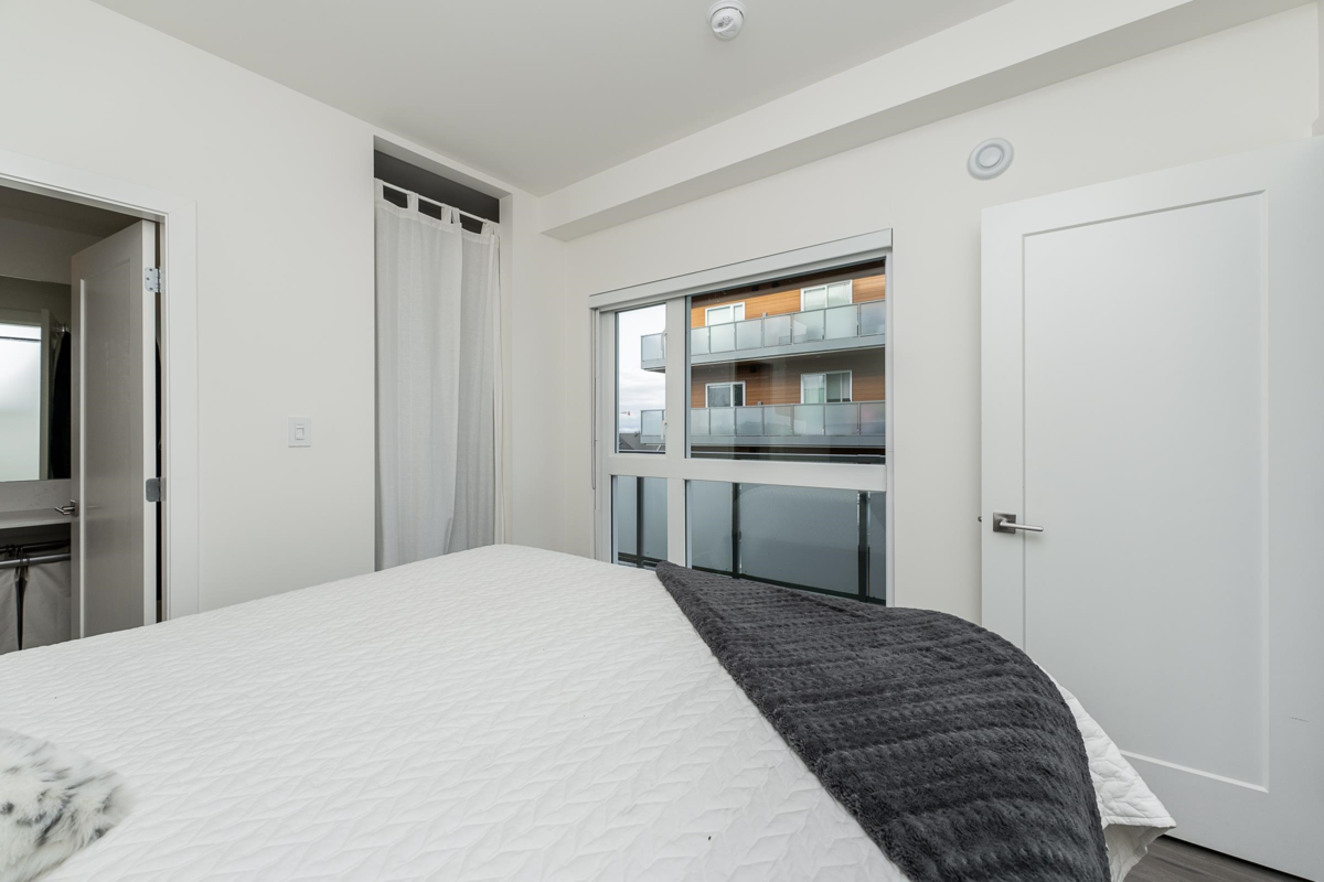 Welcome to Aristotle in Willoughby! This like new, CORNER UNIT with air conditioning offers 3 beds, 2 baths and 973 sq ft of bright living space! Enjoy an open plan with a functional kitchen, quartz counters, S/S appliances, gas cooktop, sleek cabinetry and counter seating with pendant lights. Living + dining seamlessly connect and open to a massive, wrap-around, covered balcony! Primary has WIC and generous 4 piece ensuite w/quartz counters and double vanity. Expansive windows throughout the home, 9 ft ceilings, roller shades, vinyl flooring, heat pump + gas hook up for BBQ. Amenities: fitness center, social room, playground and outdoor BBQ. 2 side by side parking and storage locker. Conveniently located near Carvolth Exch, shopping, restaurants + quick access to Hwys.