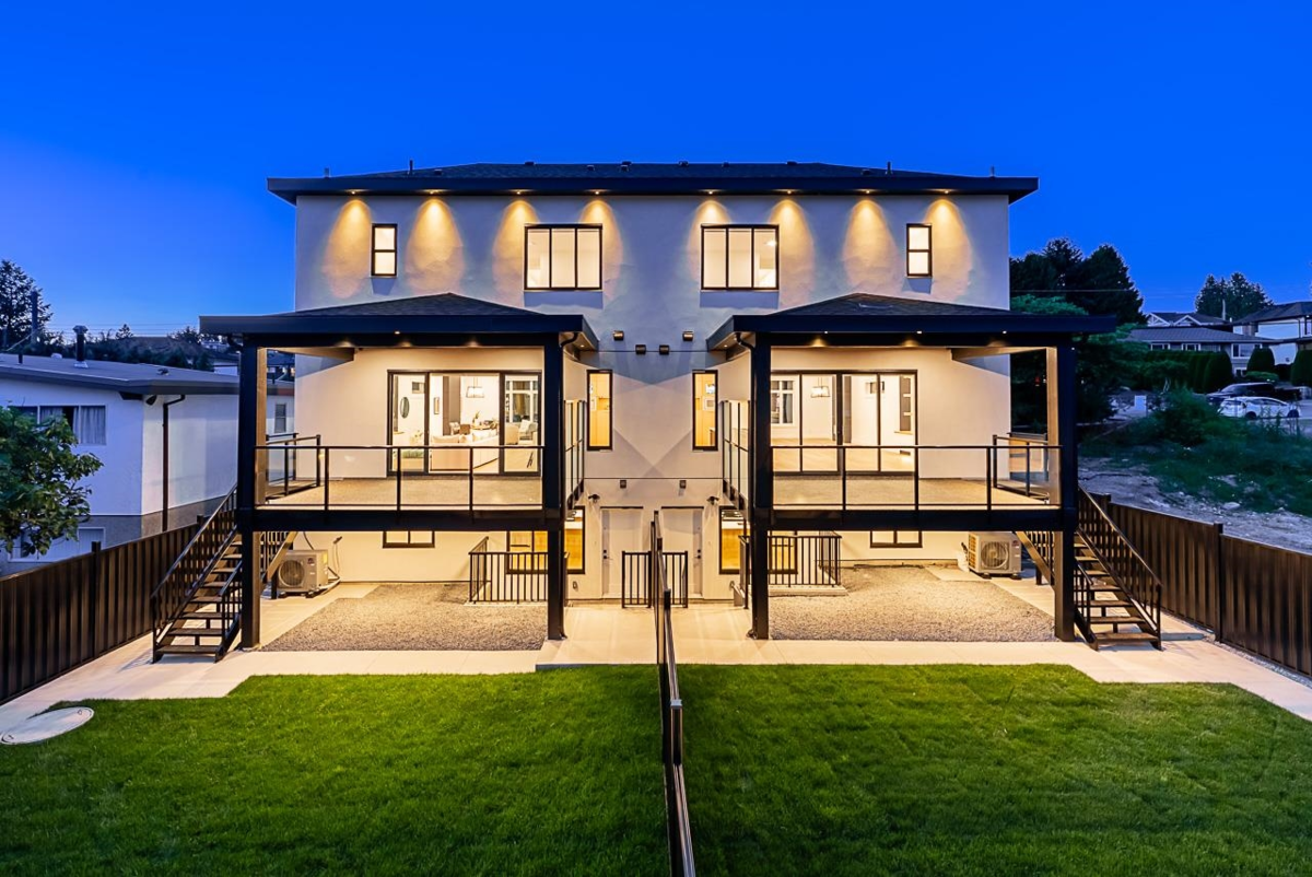 Welcome to Venables Residences! Architecturally designed farm house style duplexes! Over 3200 sqft of living space. TOTAL 6 BDRMS, 6 BATHS & 2 kitchens. TOP floor has 3 BDRMS all with separate BATHS. Enjoy the vaulted ceilings in the master rm & must see luxury bath. Laundry is conveniently located on top floor. Main floor has 10 ft ceilings, open concept floor plan with spacious living rm leading into the dining rm. Enjoy watching your favorite TV shows from your beautiful kitchen. Kitchen finished with Fisher & Paykel appliance package. Integrated fridge & dishwasher. Grand Island with seating. Covered deck off family rm for summer barbecues. 2 BDRM legal suite plus media rm with full BDRM & BATH. Huge back yard for kids to enjoy. 2 car garage plus open parking. A/C, radiant heat, CCTV..