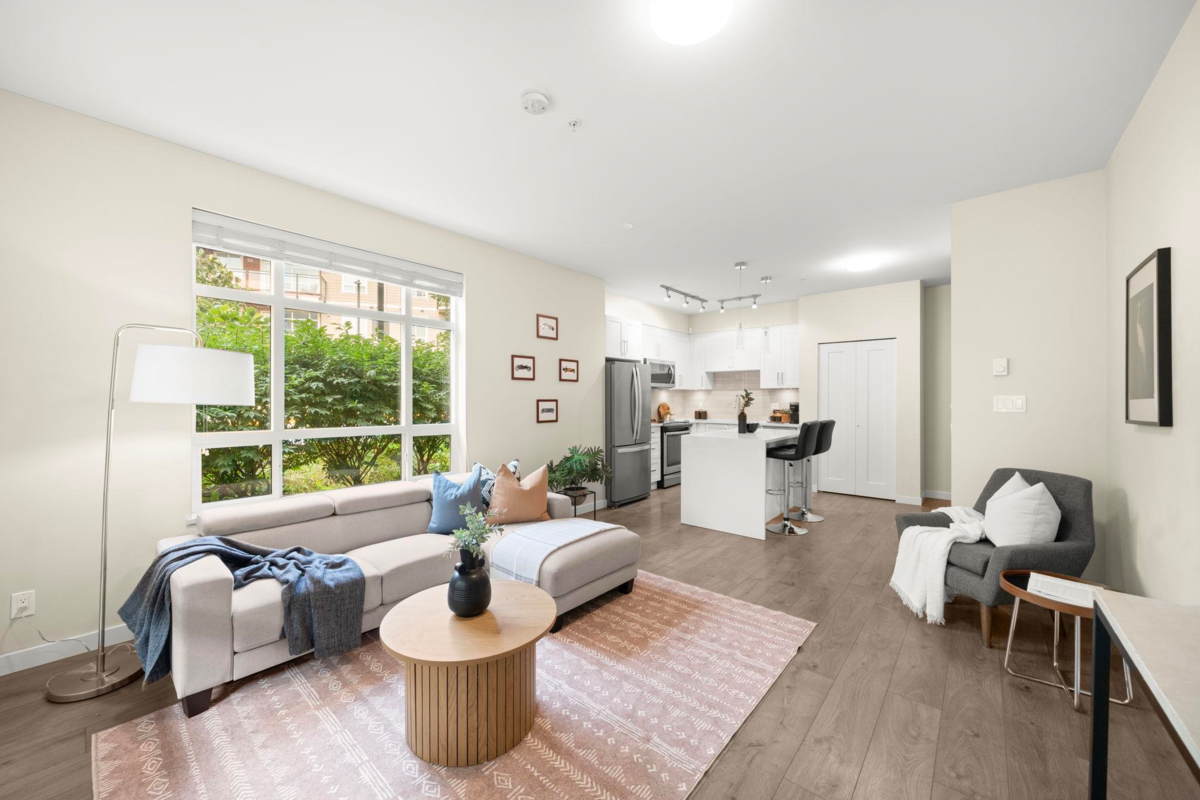 This ground-floor corner unit at Elements offers a rare combination of privacy and convenience. Contemporary finishes flow throughout, and the oversized covered patio is perfect for morning coffee or year-round entertaining. The home includes two parking stalls and provides access to exceptional amenities, including a gym, lounge, party room, billiards, media room, and children’s play area. Ideally situated within walking distance to shops and dining, with easy access to major commuter routes.