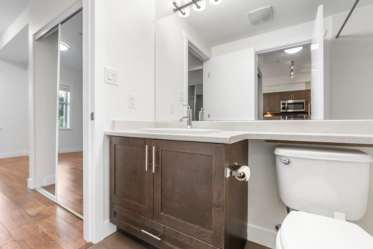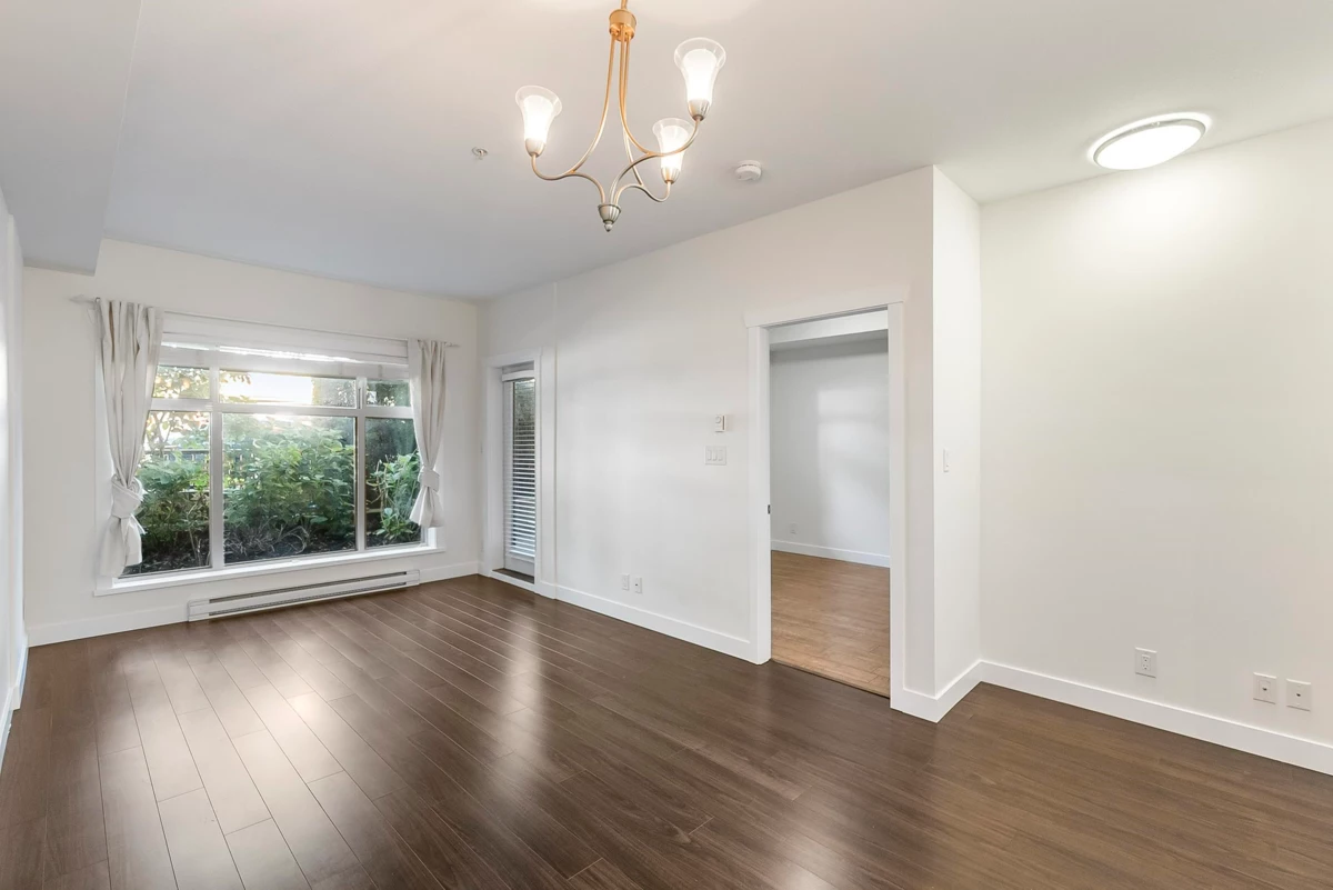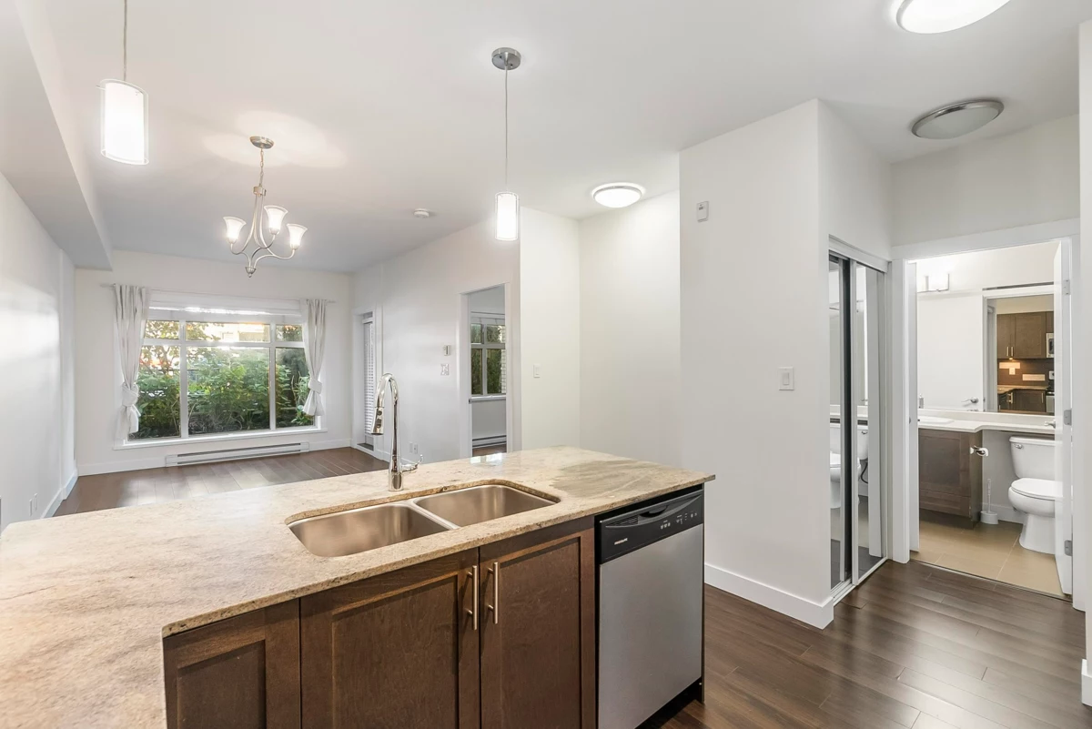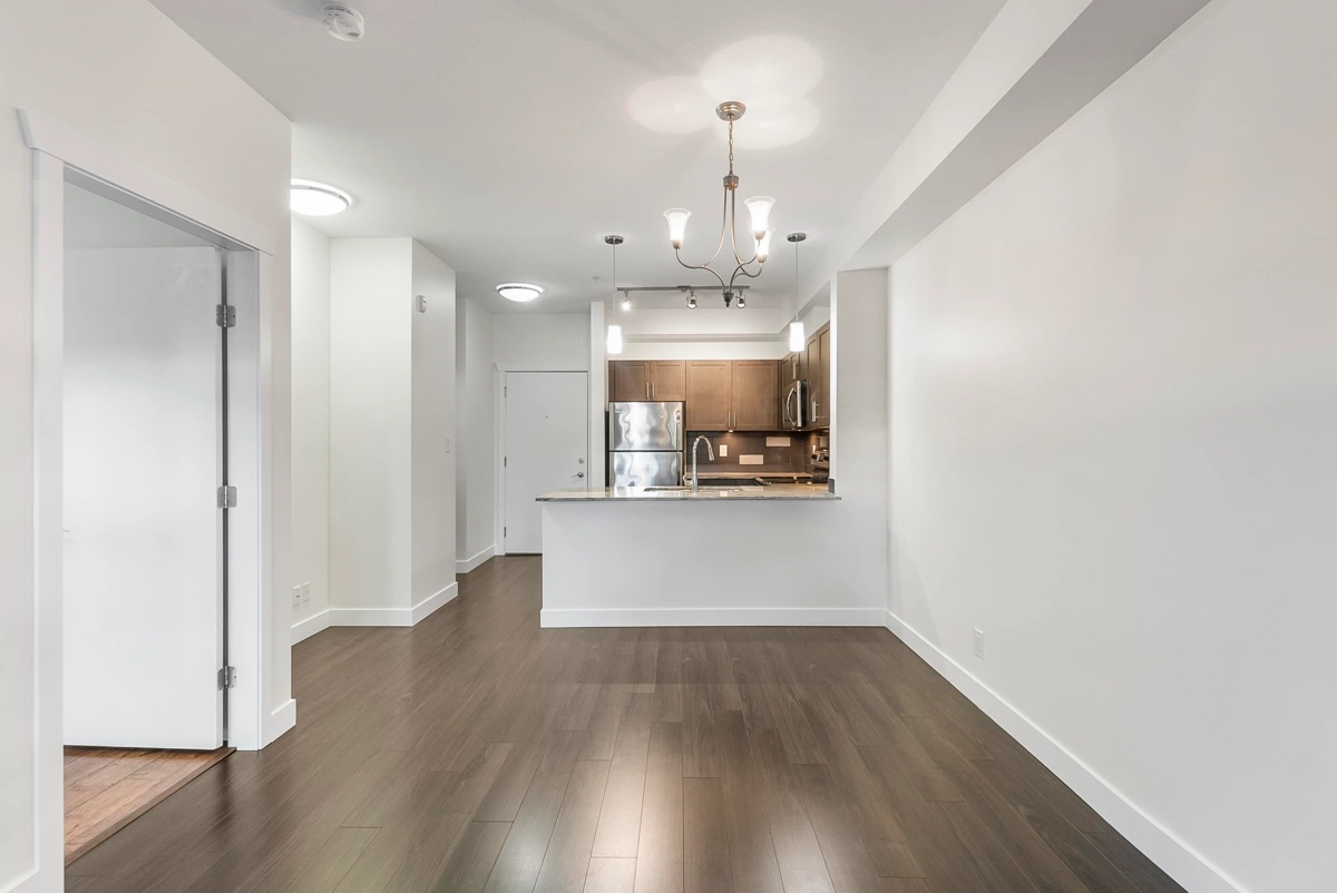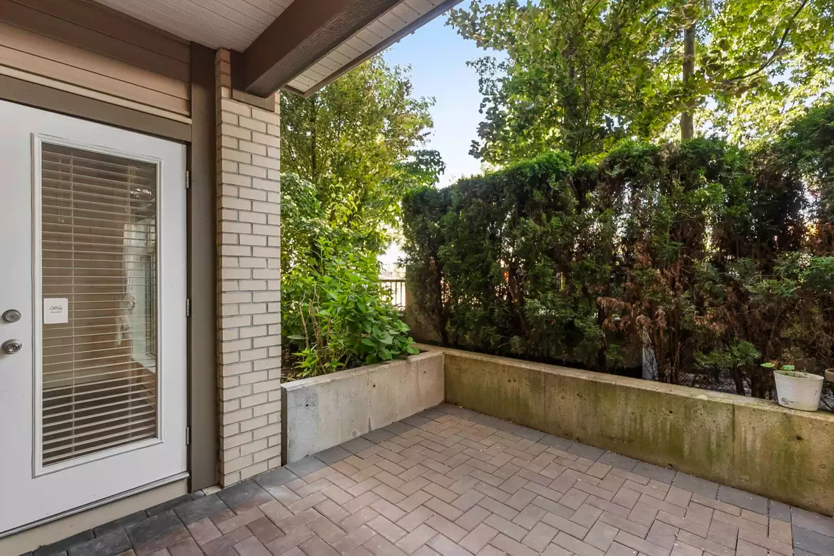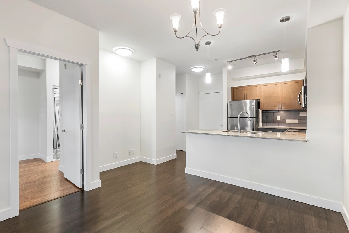 The Brookland - Only 4-minute walk to Gateway SkyTrain Station, Shoppers Drug Mart, & Nesters Market, this well-maintained 1 BDRM/1 BATH GROUND LEVEL condo offers both convenience & comfort. Built in 2011. This 595 SQ.FT FEAT. a functional open-concept layout w/ 9’ ceilings & updated laminate flooring in the bedroom. The kitchen is equipped with maple cabinetry, granite countertops, a marble-accented tile backsplash, and quality appliances. Freshly painted throughout. Step outside to your spacious and private patio—perfect for relaxing or entertaining. Enjoy access to building amenities - lounge & fitness room. 1 secured parking stall. Located in the K.B. Woodward Elementary and Kwantlen Park Secondary catchment. Ideal for first-time buyers or investors. Don’t miss this opportunity!
