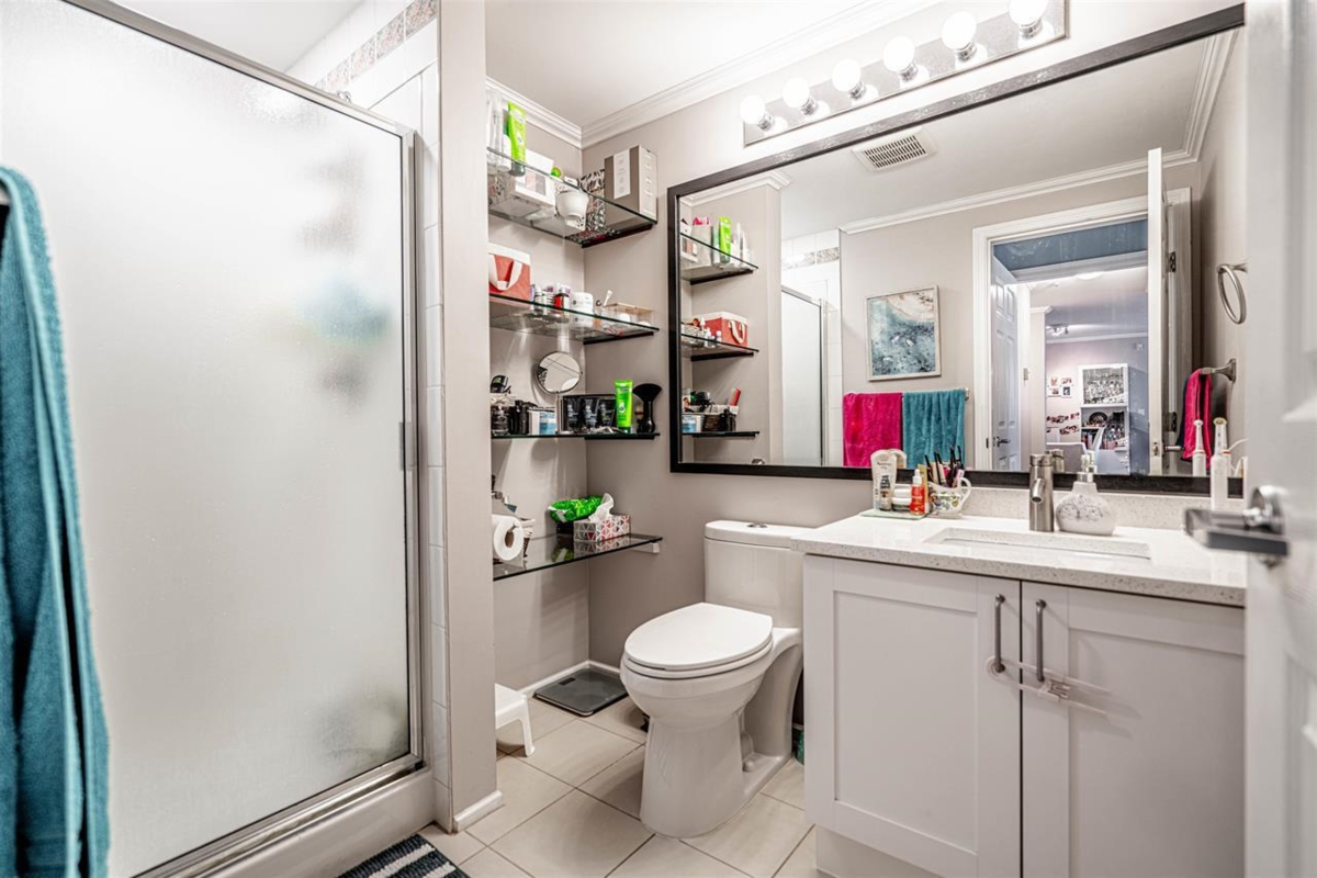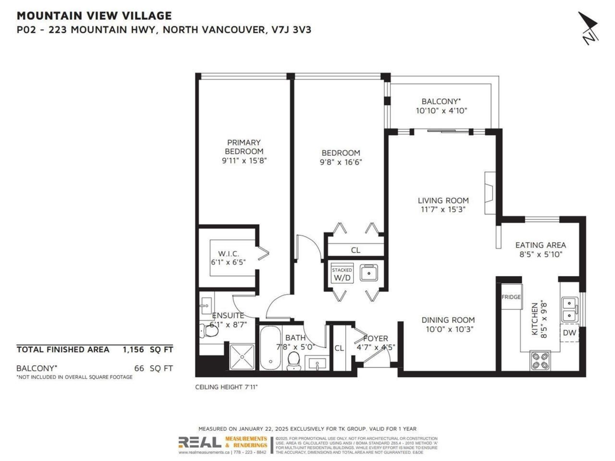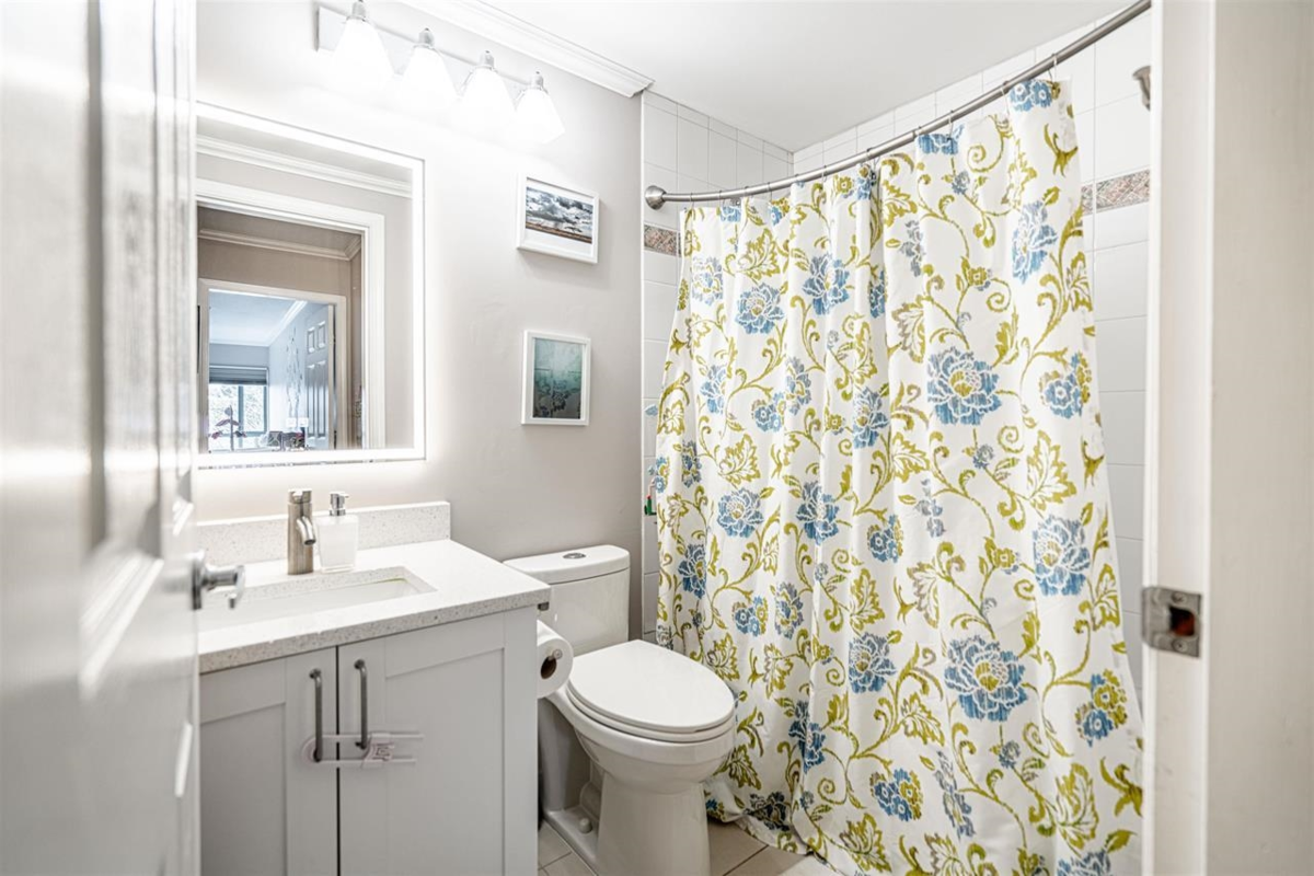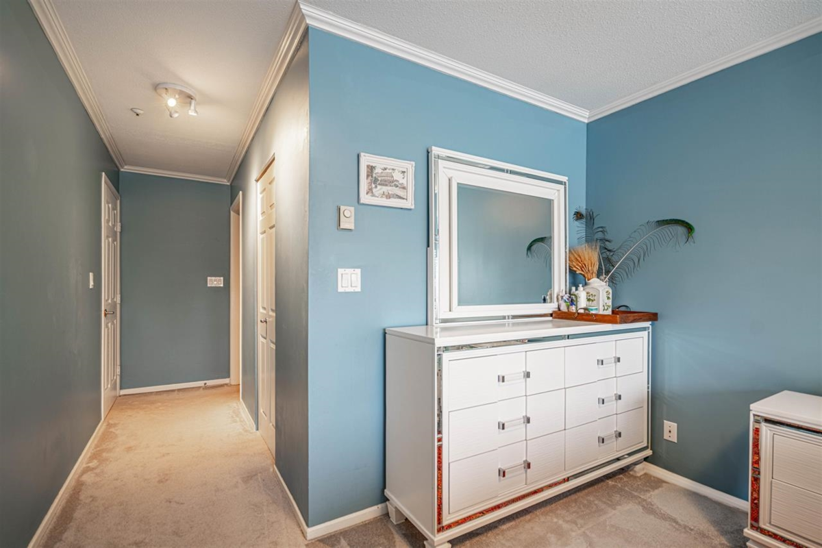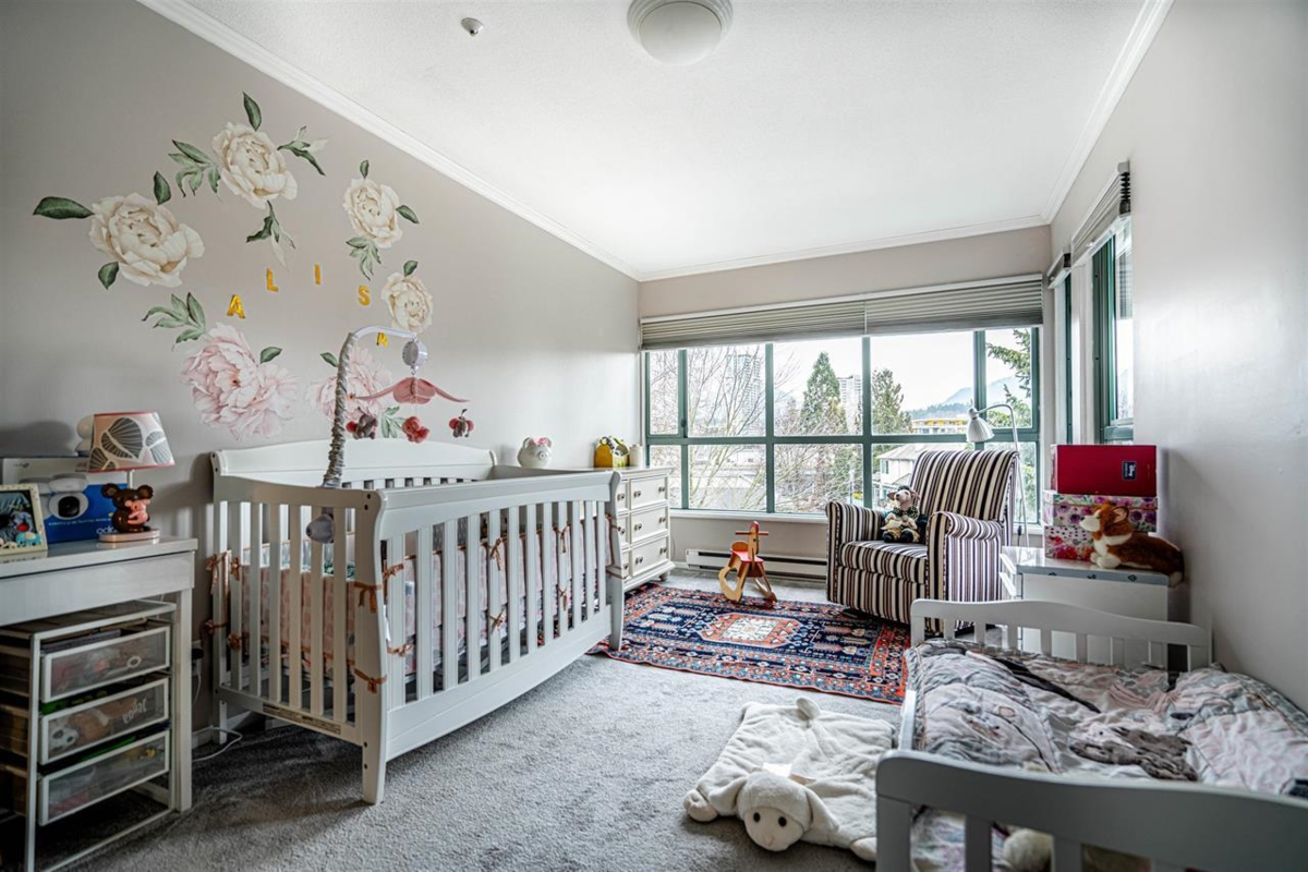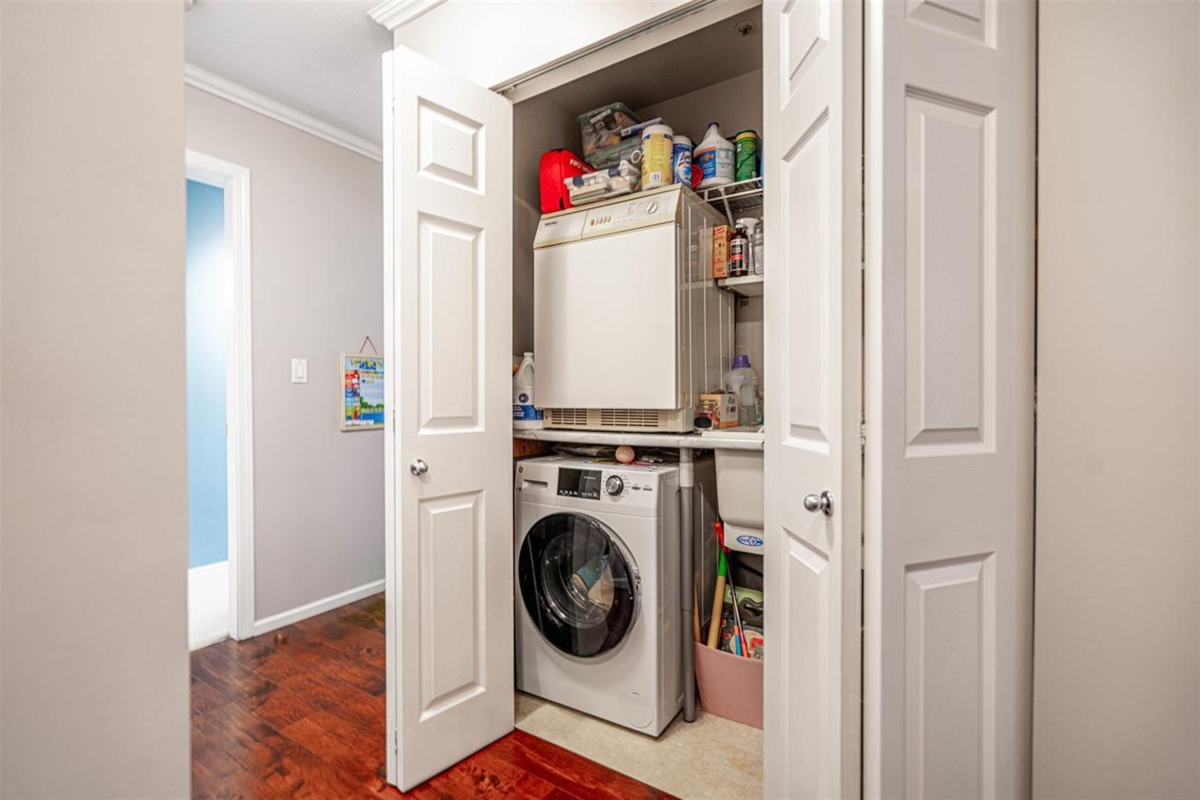 Bright & Spacious Corner Penthouse with Stunning Mountain Views! This incredible corner penthouse offers privacy, abundant natural light, and 1,156 sq. ft. of thoughtfully designed living space. Features include 2 large bedrooms, 2 full bathrooms (incl. a 3-piece ensuite), expansive living and dining areas with a cozy gas fireplace, a functional U-shaped kitchen with an eating area, in-suite laundry, ample storage, and a walk-in closet in the primary bedroom. All appliances were replaced in 2024 for added convenience. Additional highlights: crown moldings, no upstairs neighbors, 2 parking spaces, and access to a common party room. Building has brand new roof and all new pipes. Conveniently located near the 2nd Narrows Bridge and shopping.