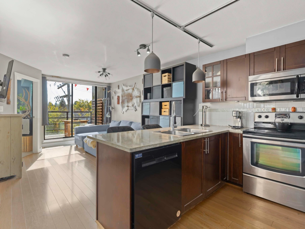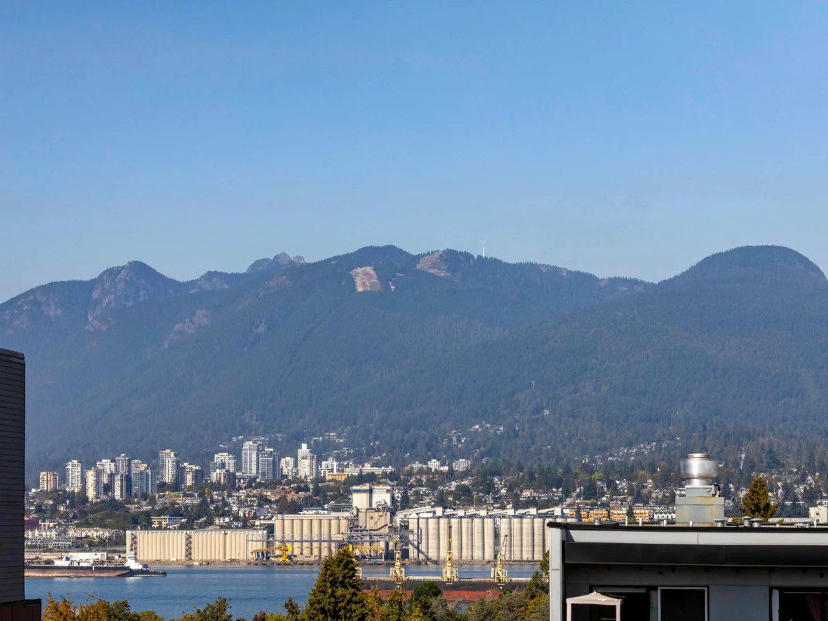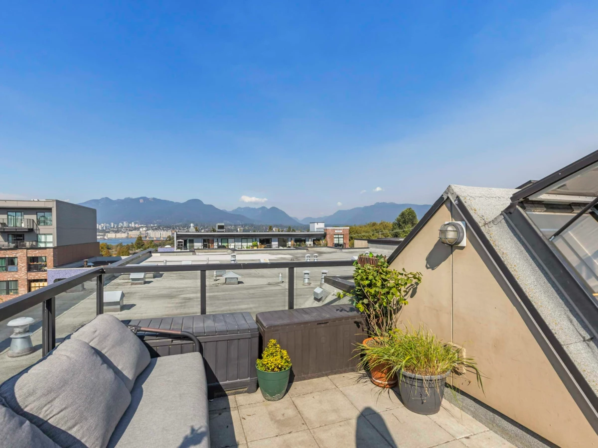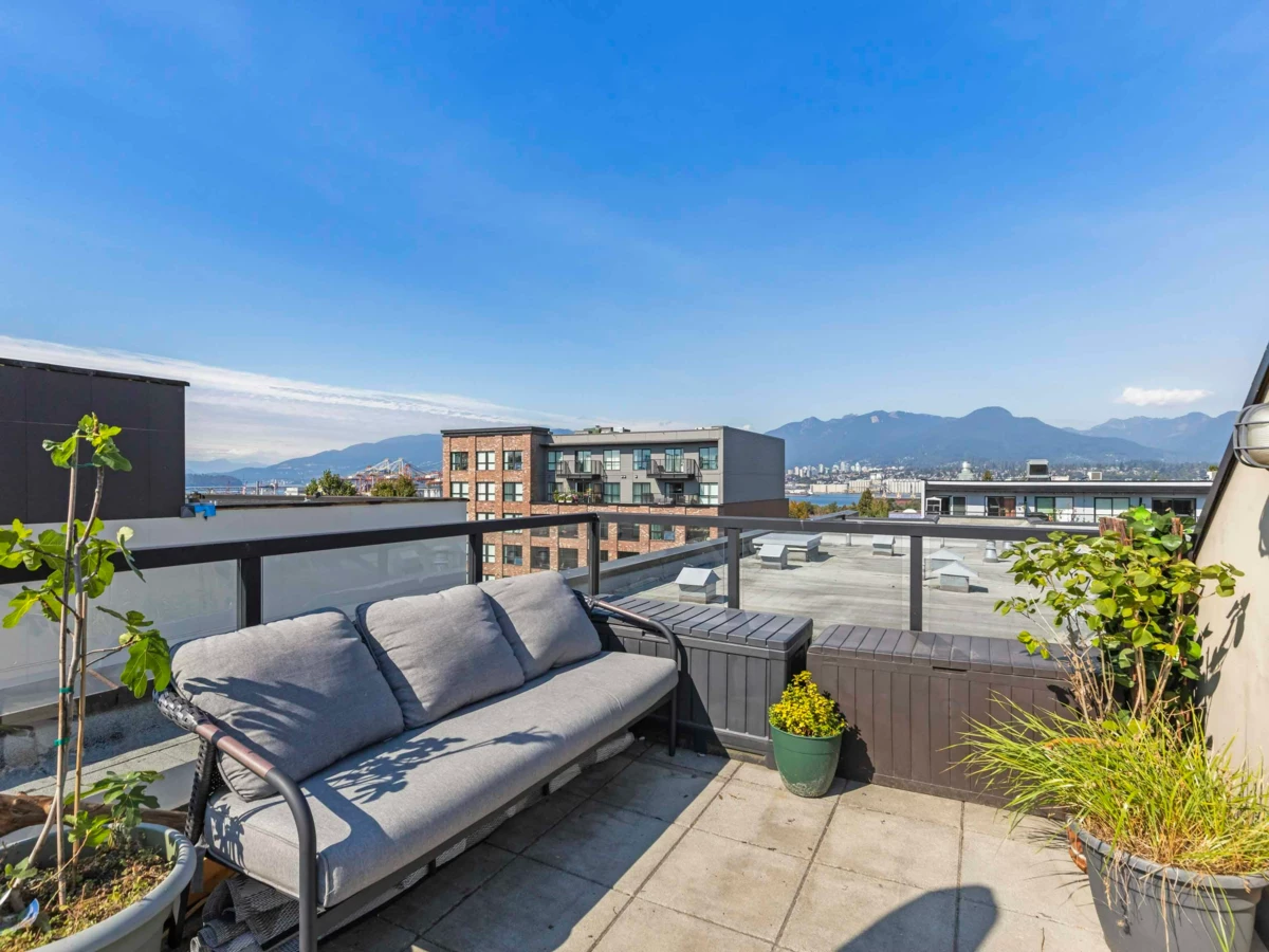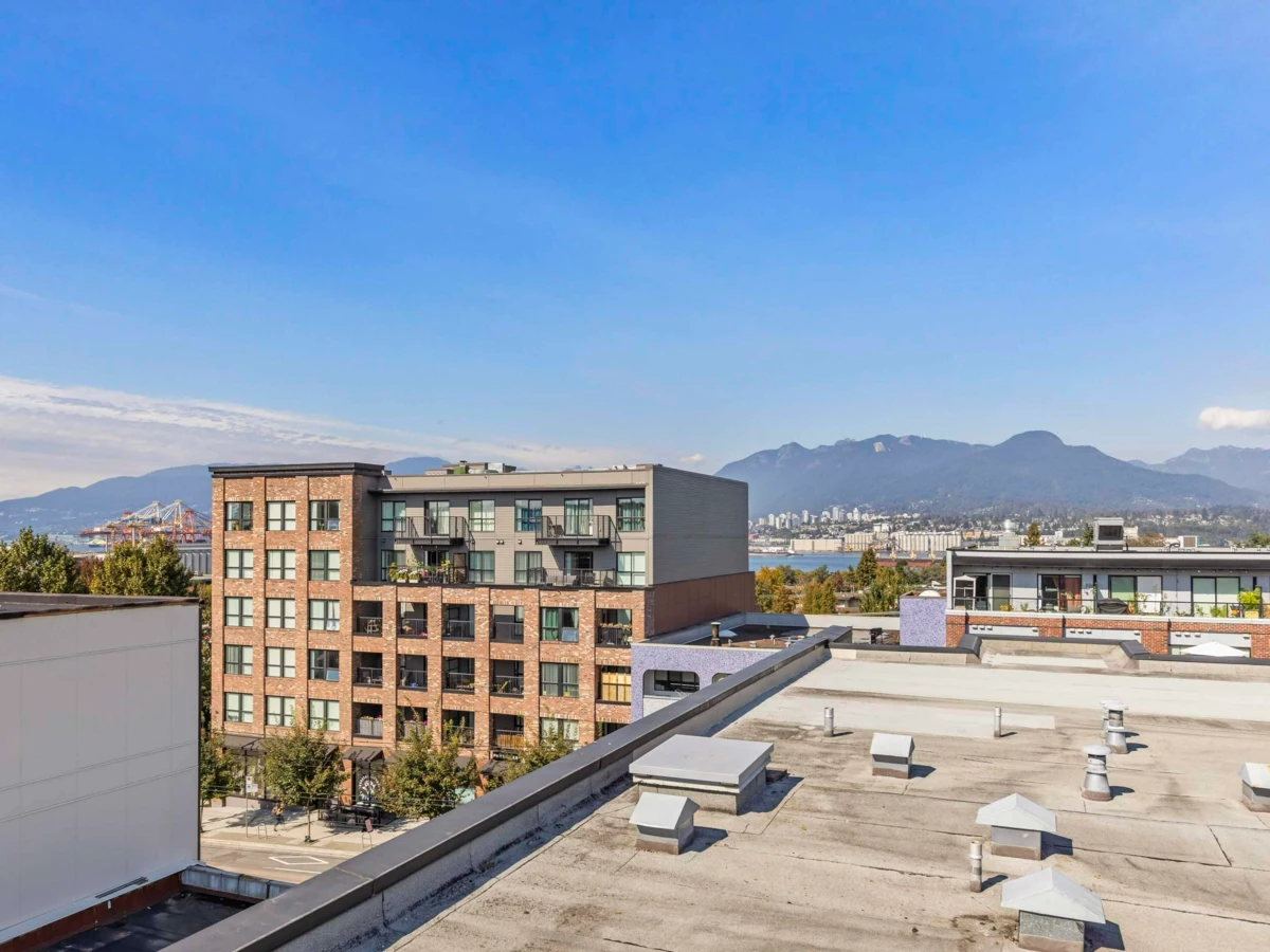 PH20 Penthouse | South West corner with 202sqft. rooftop deck & 360° water, city & mountain views on the QUIET side of building. 1 bed, 1 bath, 2 balconies-bright, stylish East Van living - feels like home and not a condo! The showpiece is a 202 sqft PRIVATE rooftop deck with 360° views of water, city & mountains & sunsets plus a 2nd balcony for morning coffee gives you 250+ sq.ft. of outdoor living. Inside, bright open-plan living flows into a modern kitchen with stainless steel appliances & smart design. Bedroom is a peaceful retreat filled w/ natural light. Added perks: in-suite laundry, secure parking & bike room. In vibrant East Van w/ transit, breweries, cafés, shops & parks just steps away. Penthouse living with a rooftop twist—rarely available & not your typical condo.