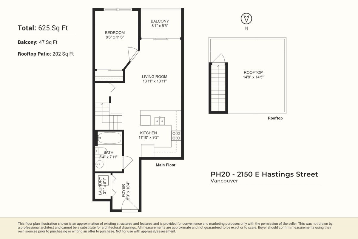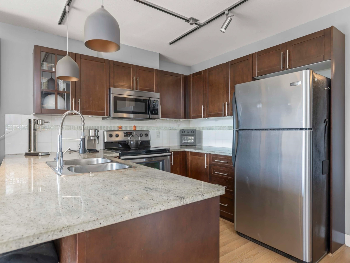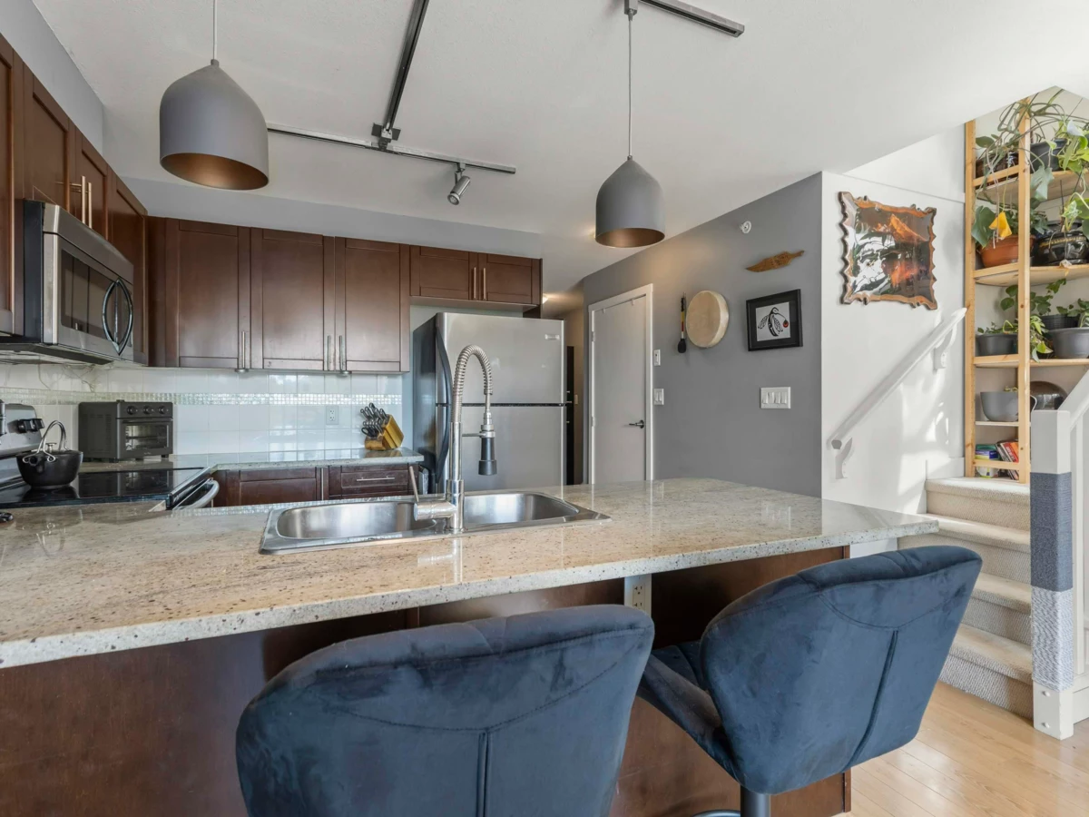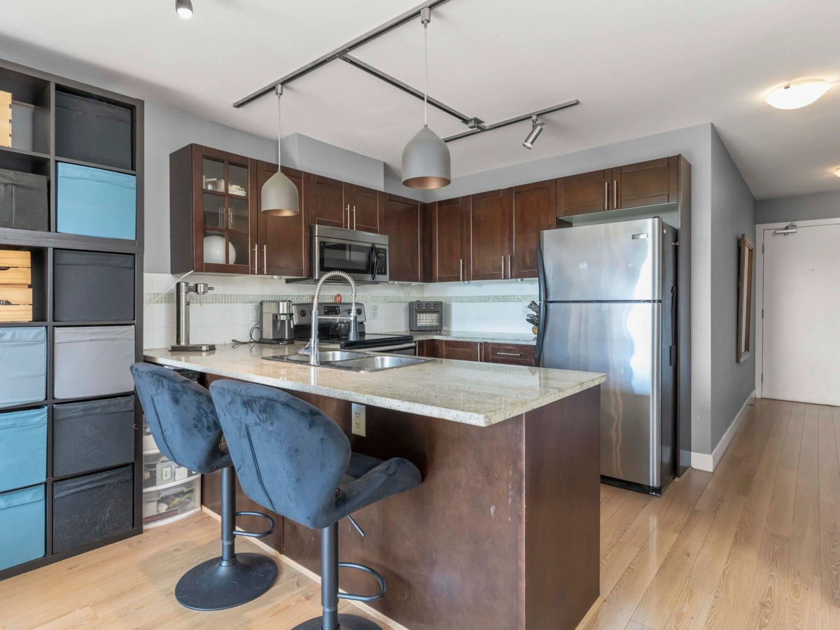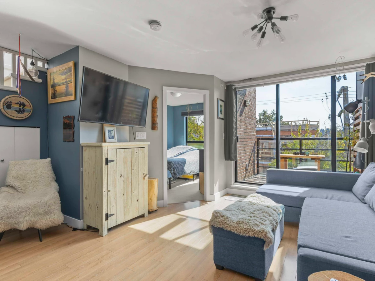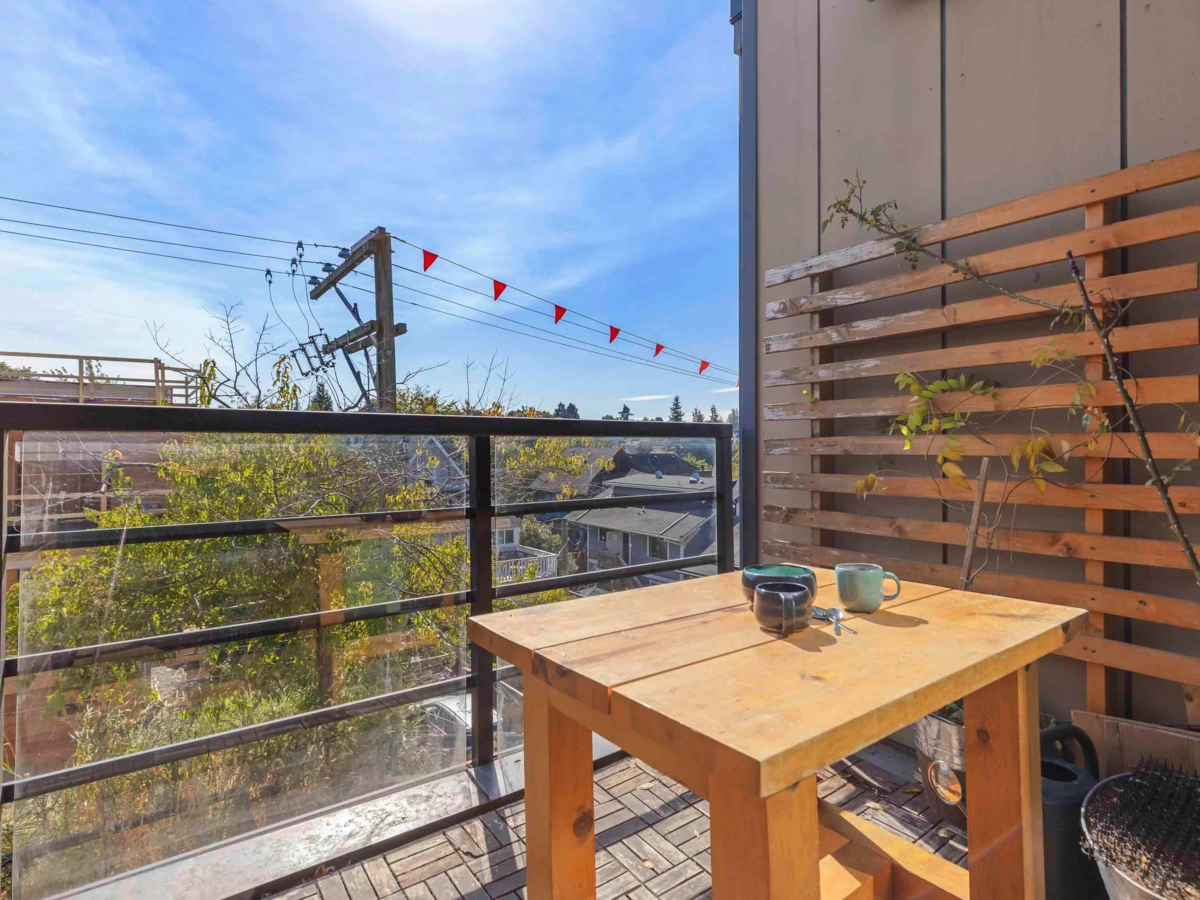 PH20 Penthouse | South West corner with 202sqft. rooftop deck & 360° water, city & mountain views on the QUIET side of building. 1 bed, 1 bath, 2 balconies-bright, stylish East Van living - feels like home and not a condo! The showpiece is a 202 sqft PRIVATE rooftop deck with 360° views of water, city & mountains & sunsets plus a 2nd balcony for morning coffee gives you 250+ sq.ft. of outdoor living. Inside, bright open-plan living flows into a modern kitchen with stainless steel appliances & smart design. Bedroom is a peaceful retreat filled w/ natural light. Added perks: in-suite laundry, secure parking & bike room. In vibrant East Van w/ transit, breweries, cafés, shops & parks just steps away. Penthouse living with a rooftop twist—rarely available & not your typical condo.