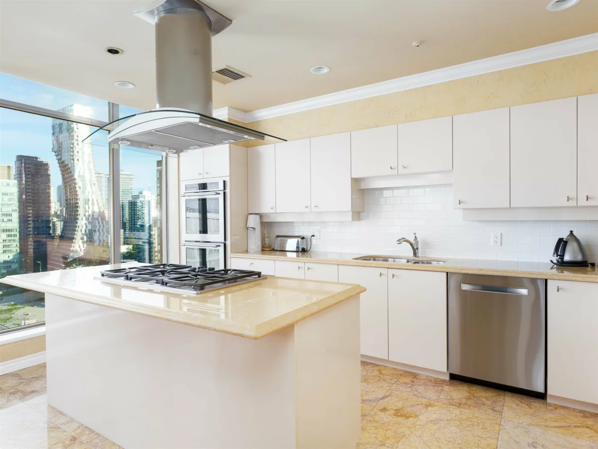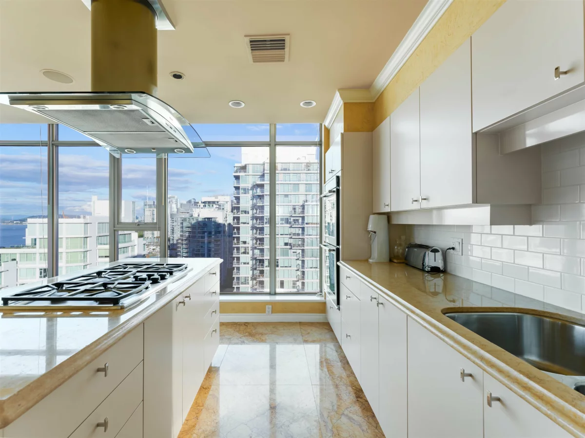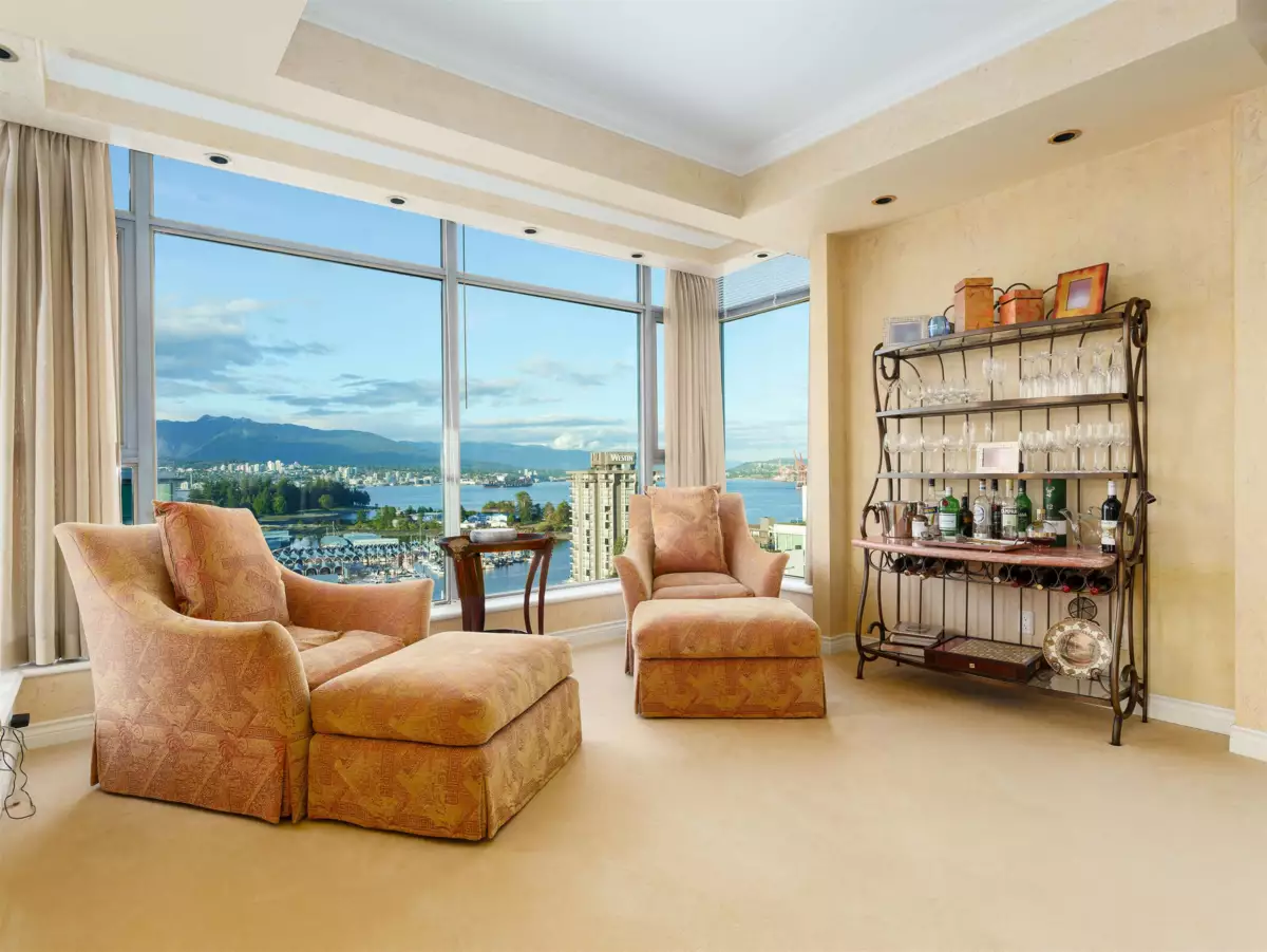 This stunning three bedroom home features 270 degree views of Burrard Inlet, the North Shore Mountains, and Stanley Park and was extensively customized by the current owners to create house-like living spaces, perfect for entertaining family and friends. Exquisitely finished, with extensive use of marble and venetian plaster throughout and complimented by Berber carpets, this home in the sky is in pristine condition and situated in the quiet and serene Bayshore Gardens enclave next to Stanley Park. Easy walkability to everything the city has to offer; Seawall, restaurants, groceries, and coffee shops, the location is second to none. First class building amenities include a concierge, gym, and sauna and a storage locker and three secure underground parking stalls are included.