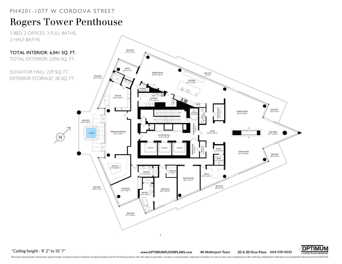 THE ROGERS TOWER PENTHOUSE formerly Shaw Tower - Experience the epitome of luxury living spanning the entire 42nd floor. Boasting 6,041sf of opulent interior living & 2,100sf of breathtaking exterior w/ panoramic views of Coal Harbour, Stanley Park, English Bay, & North Shore Mountains. Custom-designed by Robert Ledingham, featuring a chef's kitchen, radiant limestone floors, limestone gas fireplaces, a primary suite with dream closet, home theatre & home automation. 4 parking stalls & a private storage room. The expansive balconies include a private hot tub & built in BBQ. Enjoy hotel like amenities including 24-hour concierge, high-end gym, boardroom, and theatre. Located among amazing restaurants and boutiques. An opportunity to own the most stunning waterfront home in Vancouver!