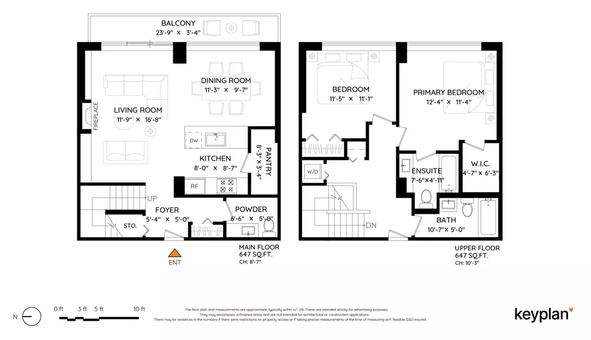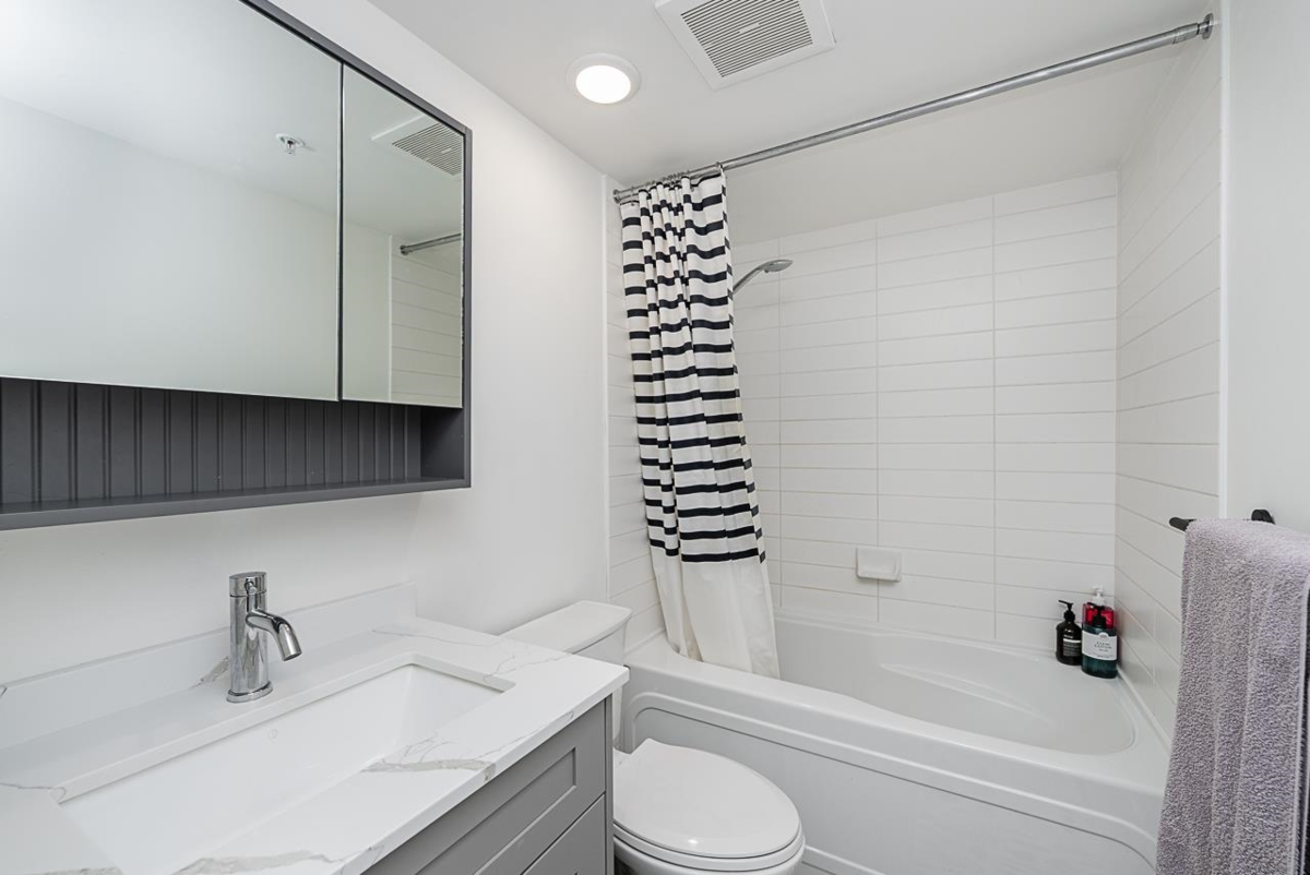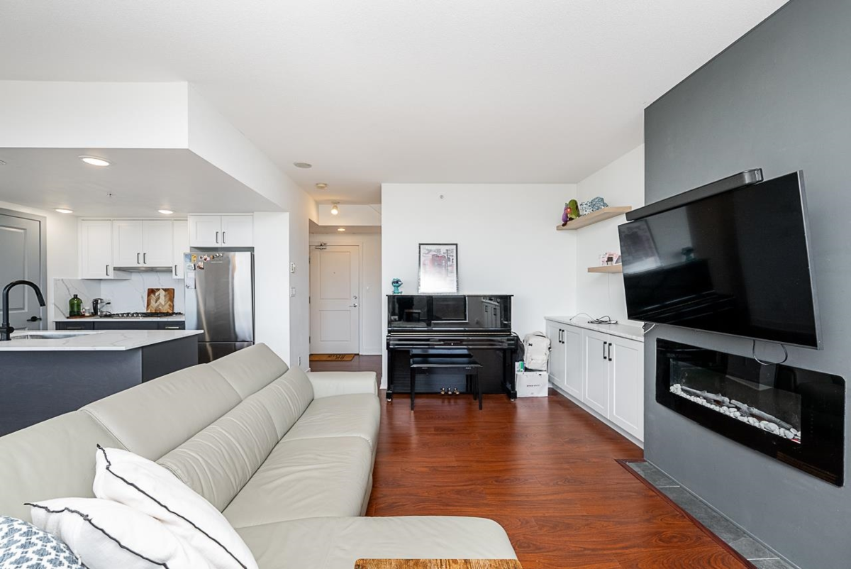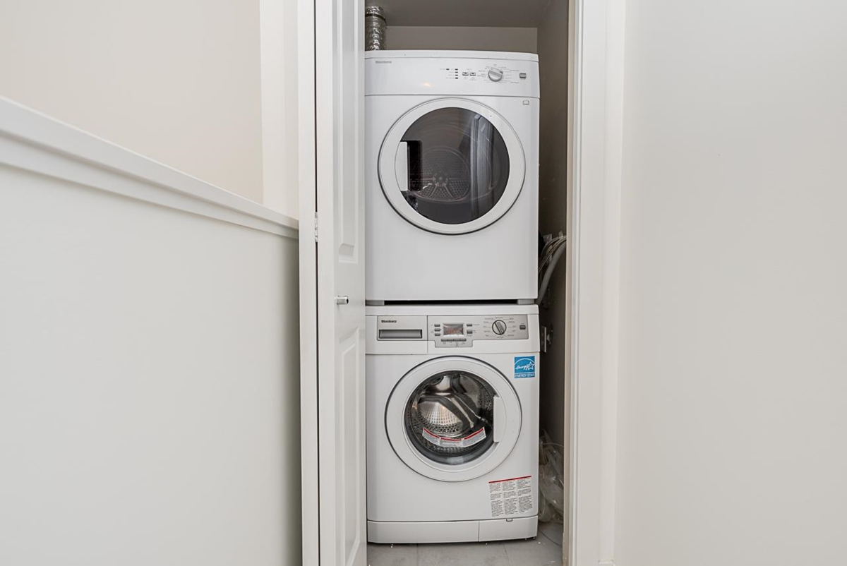 Experience luxurious penthouse living in this rare 2-level condo! This bright and spacious 2 bedroom, 2.5 bathroom home offers 1,293 sq.ft. of thoughtfully designed living space with an open layout and unobstructed east-facing views. The main level features a generous living and dining area with custom built-in cabinets, new paint, new carpet, and a powder room for guests. The updated kitchen showcases stainless steel appliances, a gas stove, new countertops, new cabinets, and a pantry for added storage. Upstairs features two large bedrooms and two full baths for optimal privacy and comfort. Includes 2 parking stalls in a secured underground parkade. Located in a well-maintained concrete building close to parks, schools, transit, and shopping.