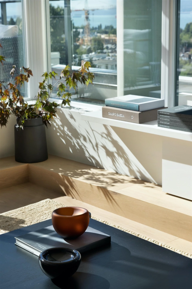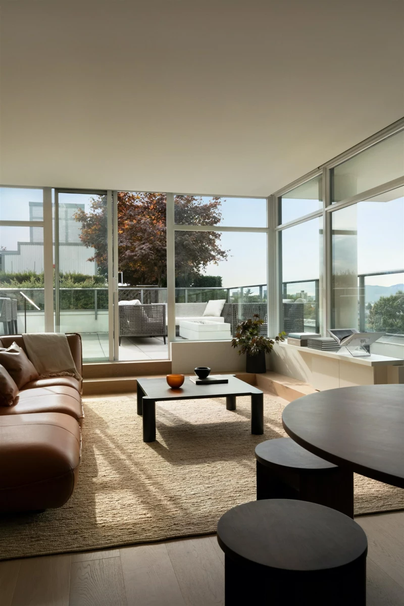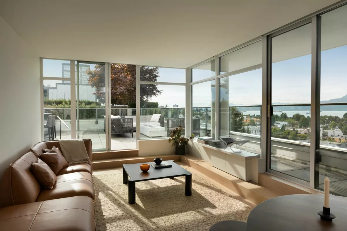 A View From the Top — terrace penthouse by untitled design agency crowns Kits360 with a zen-inspired terrace framing cinematic views of ocean, city, and mountains. Reimagined from the studs up, the home is a study in light, proportion, and detail — featuring a neutral palette consisting of natural materials, custom-built cabinetry, motorized blinds, and subtle architectural reveals that blend seamlessly into the design. Inside and out, spaces flow effortlessly — from open living areas to the built-in outdoor kitchen, lounge, and dining, all enveloped by curated greenery. A place where time slows, hearts skip a beat, and design finds its calm. Includes parking, storage, concierge, and fitness studio. Steps from West 4th shops, Kits Beach, and Vancouver’s finest cafés and restaurants.