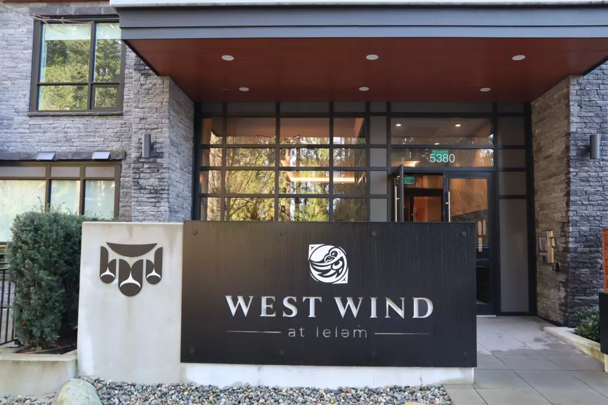 The one-bedroom corner suite at West Wind features oversized windows that frame stunning views of the mountains, lush green landscapes, and downtown. Thoughtful design details include a well-appointed kitchen equipped with Bosch appliances and an engineered stone countertop, allowing you to cook while enjoying the views. Also offers an efficient heat pump system and wood-style laminate flooring in the living areas. Thanks to its southeast-facing orientation, this unit is bathed in natural light throughout the day. An EV parking stall and storage locker are included for added convenience. Located just steps from trails, parks, a retail plaza, schools, and more, this home is ideal for couples, students, or professionals!