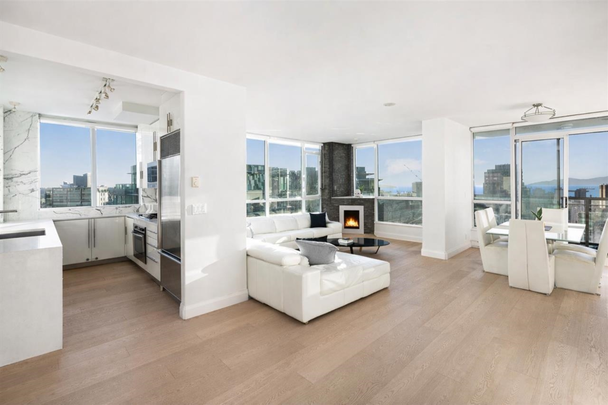 Elevated living in this spectacular Coal Harbour sky home offering breathtaking panoramic views of the city skyline, ocean, and North Shore Mountains. Fully renovated with modern sophistication, this 1,790 sq.ft. residence features an exceptional entertainment-focused layout with expansive living and dining spaces framed by iconic outlooks. Three generous bedrooms — including two luxurious primary suites with walk-in closets — are paired with three spa-inspired bathrooms featuring premium finishes. A chef’s kitchen showcases Sub-Zero and Bosch appliances, Caesarstone counters, and dramatic marble accents. Enjoy A/C, pool w/steam & sauna, fitness centre, two side-by-side parking stalls, storage, plus pet- and rental-friendly flexibility.